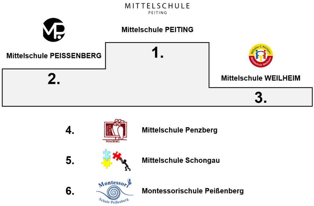 Für absolute Spannungen und Dramatik sorgte dann das Endspiel zwischen der Mittelschule Peiting und dem Titelverteidiger, der Mittelschule Peißenberg. Beide Teams lieferten sich einen offenen Schlagabtausch, den schließlich die Mittelschule Peiting verdient mit 3:2 für sich entschied.