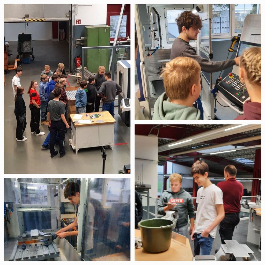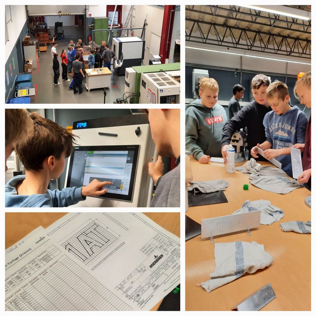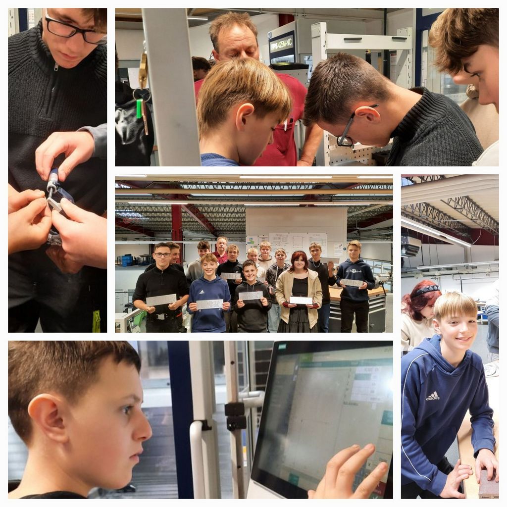 Nach der Programmierung frästen die Maschinen die Namensschilder, und die Schüler hatten die Möglichkeit, die Oberflächen in der Lehrlingswerkstatt von Hand zu bearbeiten. Diese praktische Erfahrung vermittelte den Schülern ein Gefühl der Zufriedenheit und des Erfolgs.
